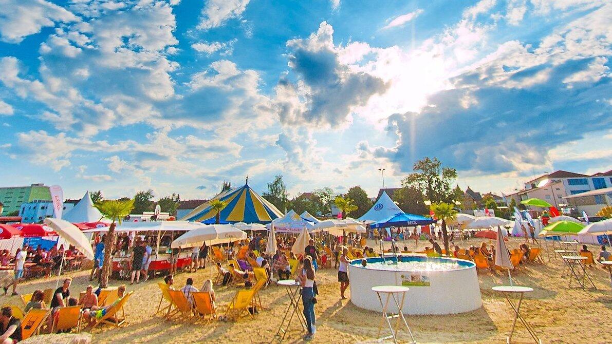 Endlich ist es wieder soweit! 500 Tonnen Sand auf der Festwiese am Ufer der Abens, mit den bewährten beachurlaubverdächtigen Utensilien: Loungemöbel, Sonnenschirme, Liegestühle, Sitzsäcke, Pool, Beachvolleyball, Boccia,
