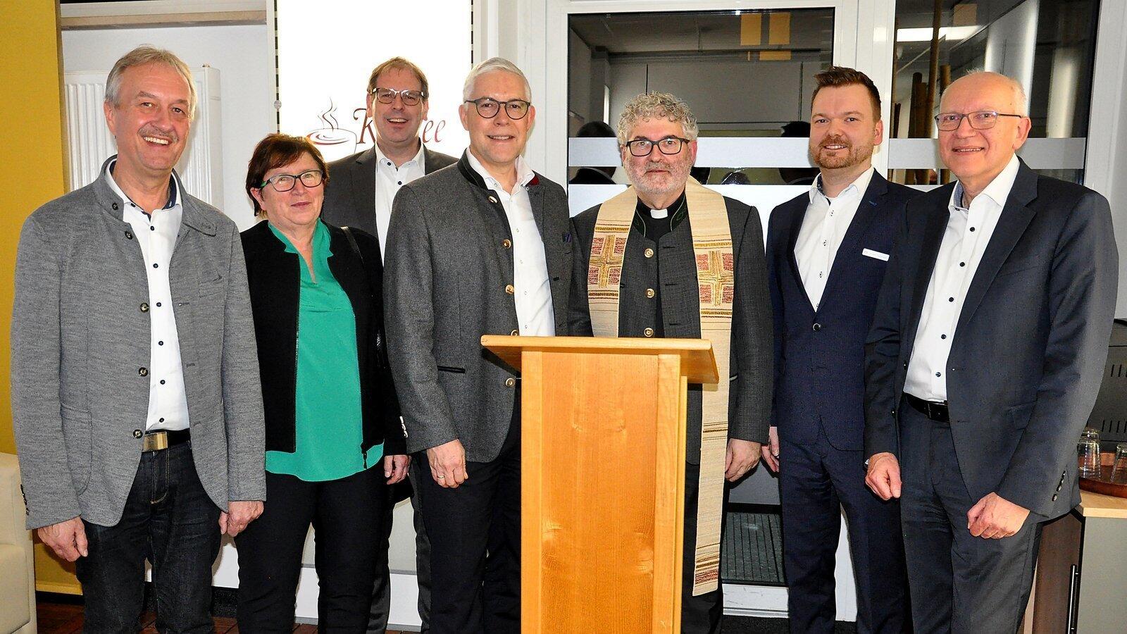Bei der Eröffnungsveranstaltung: (von links) Bürgermeister Herbert Blascheck, Bürgermeisterin Ida Hirthammer, Bereichsleiter Thomas Ostermeier, Vorstandsmitglied Helmut Kundinger, Pfarrer Monsignore Johannes Hofmann, Regionalleiter Hubert Holzmayr und Vorstandsmitglied Franz Mirbeth.