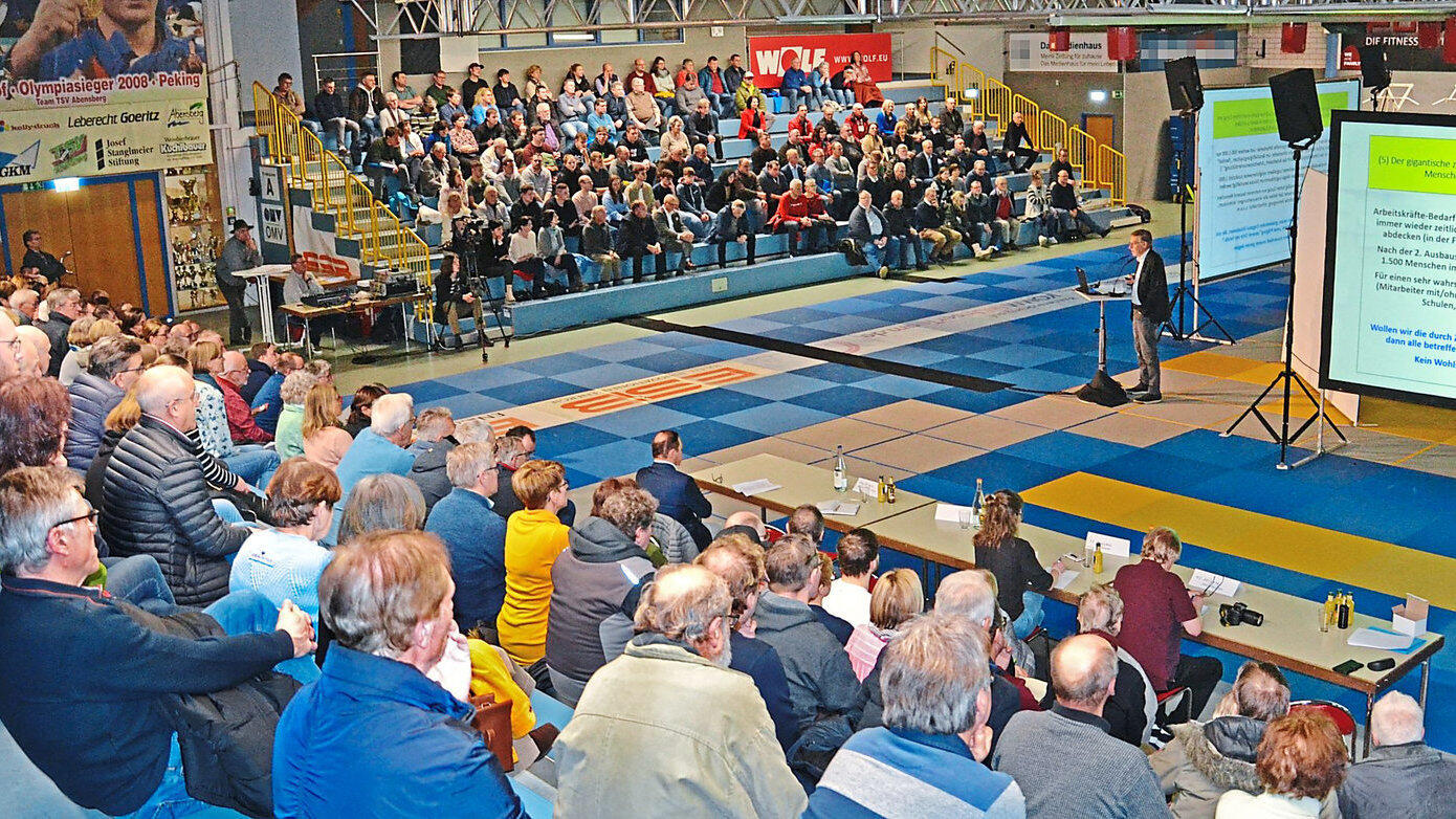 Fast 400 Interessenten kamen zum Informationsabend zur Gründung einer Bürgerinitiative gegen das geplante Logistikzentrum von Amazon in Stocka bei Rohr in die Josef-Stanglmeier-Halle.