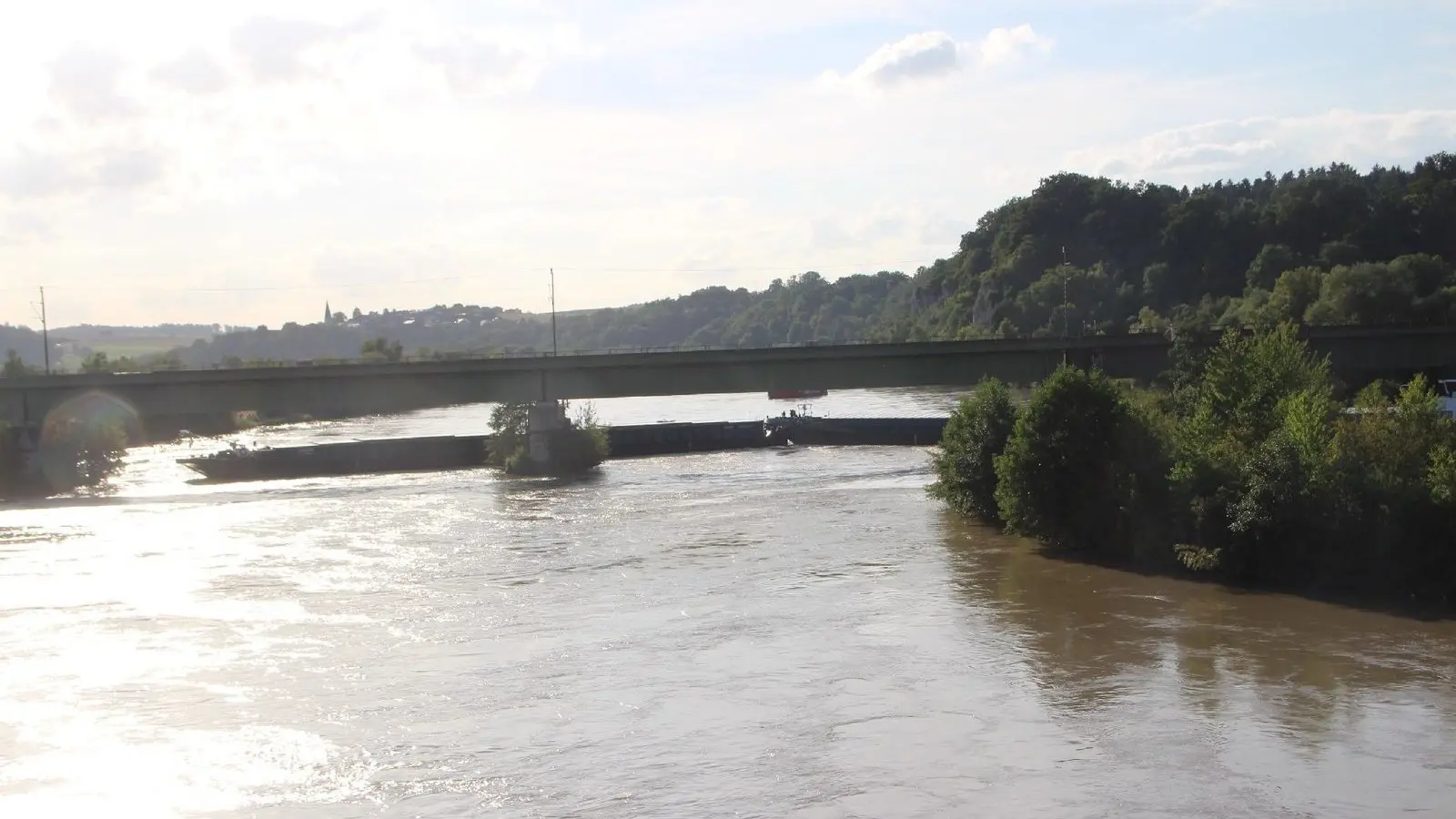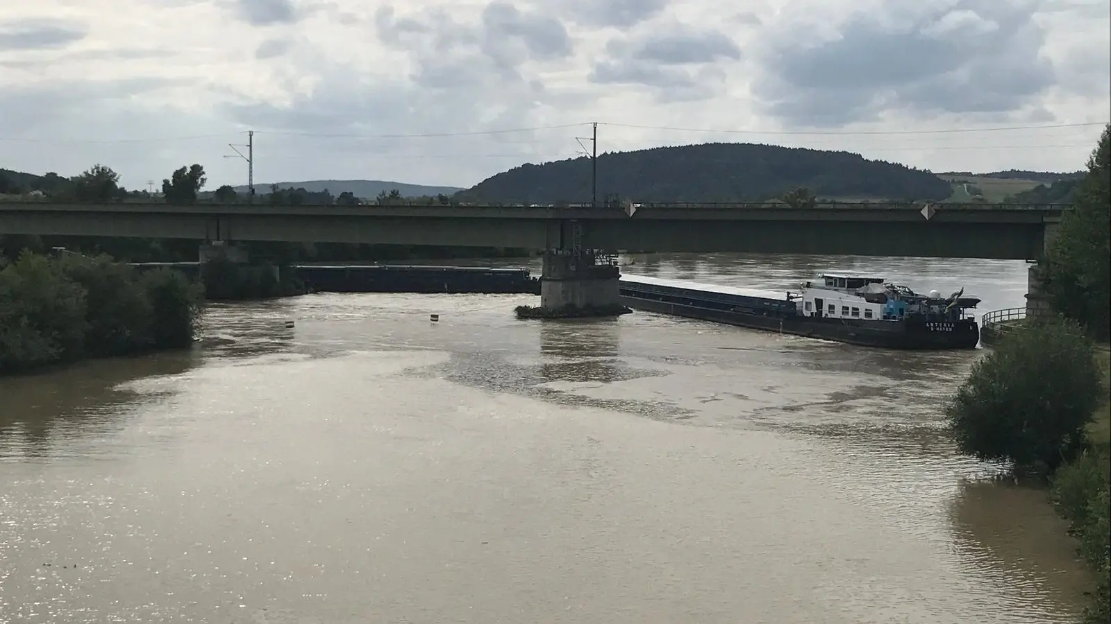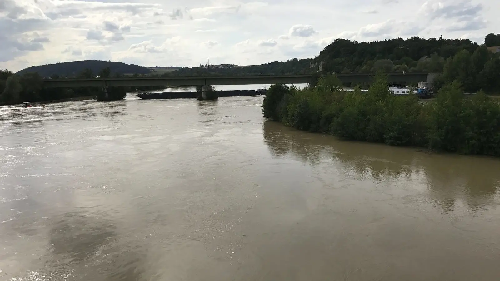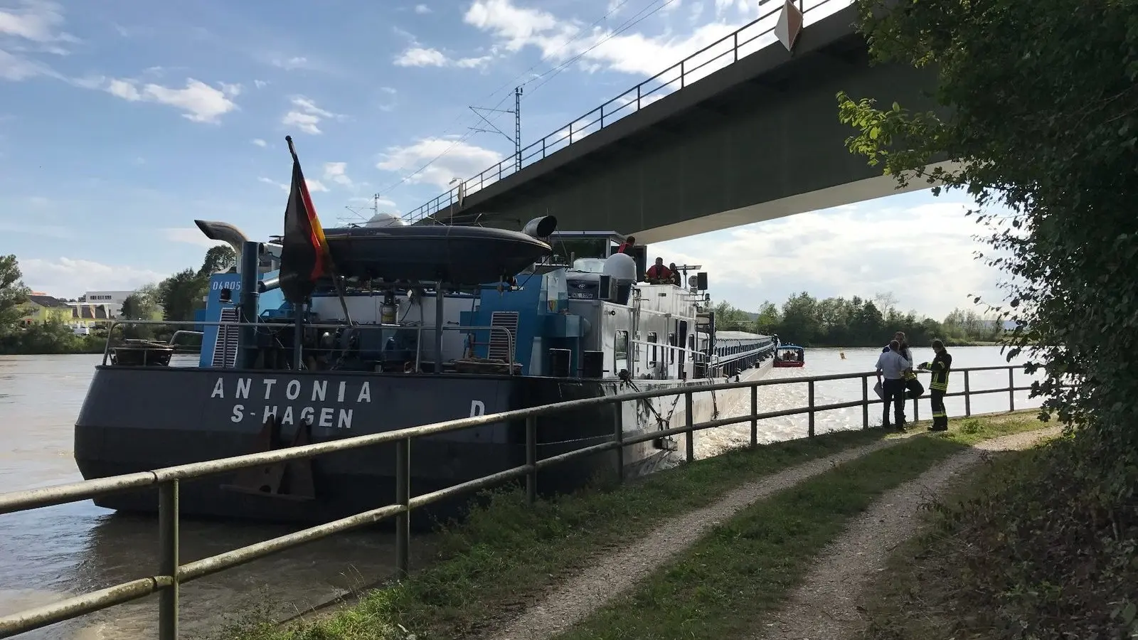 Gegen 16 Uhr hat sich bei Poikam auf der Donau ein Schiff quergestellt.