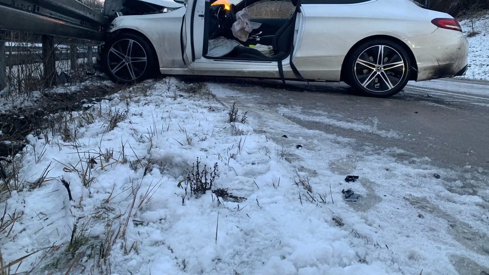 Anscheinend hatte der Mercedes-Fahrer die falschen Reifen für die winterlichen Straßenverhältnisse aufgezogen.