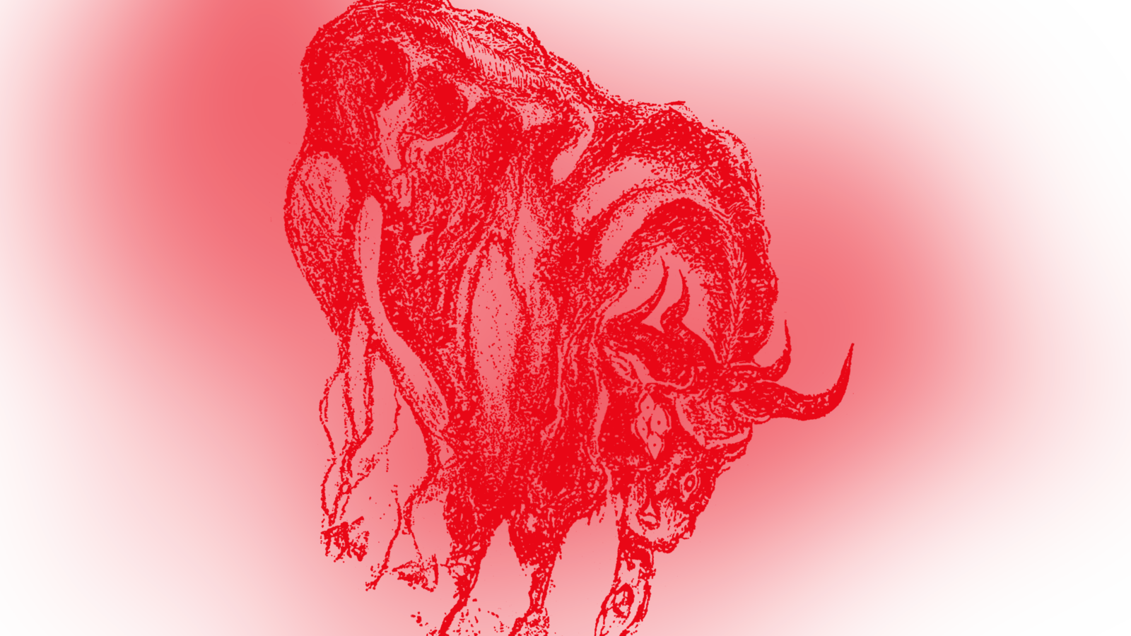 „Steinochse“: Druck von Katharina Lutz, der das Mainburger Ausstellungsplakat und die Flyer ziert.