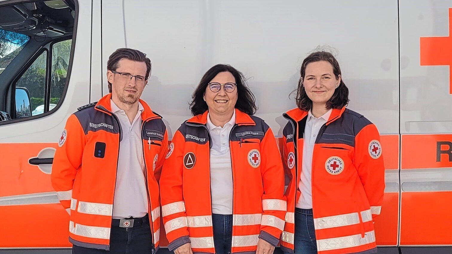 Packen in Zukunft gemeinsam an (v. l.): der örtliche BRK-Bereitschaftsleiter Lorenzo Schröer, die stellvertretende Fachdienstverantwortliche Ulrike Hase und Kassiererin Stefanie Schmid.