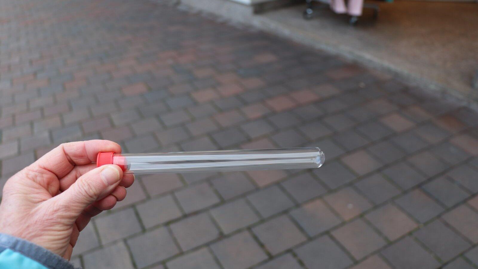 In dieses Reagenzglas können die Moosburger ihre persönliche Botschaft an die Nachwelt hineinlegen.