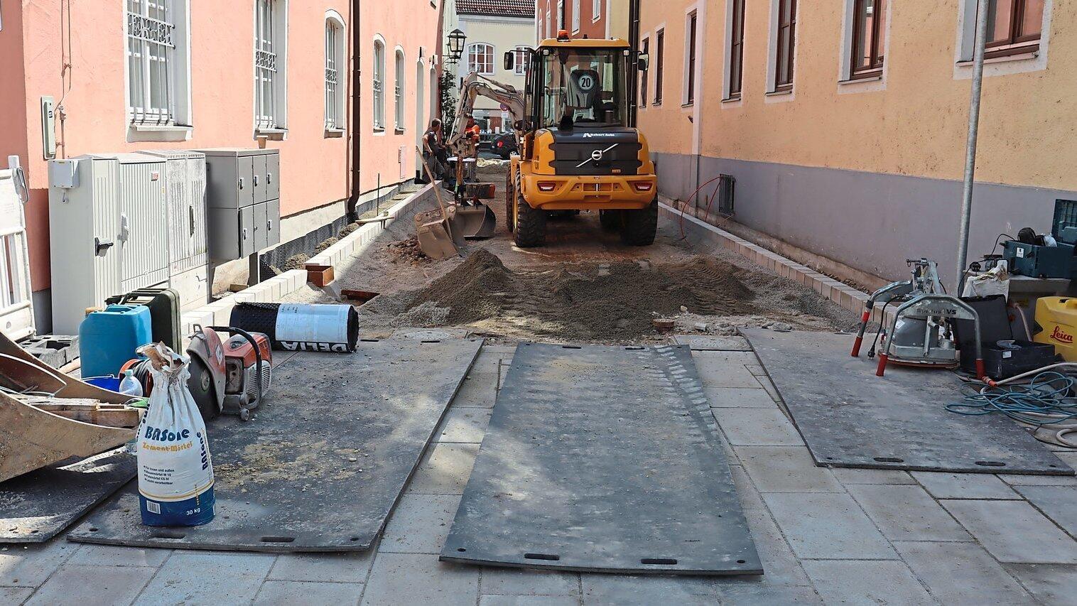 Bauarbeiten im Kirchengässchen in Moosburg im Soll