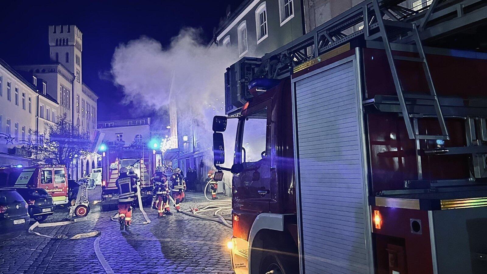 Großeinsatz mitten in der Altstadt: Im Arbeits- und Lagerbereich im hinteren Teil des „Blumenzauber“-Ladens in der Herrnstraße ist am Freitagmorgen ein Brand ausgebrochen.