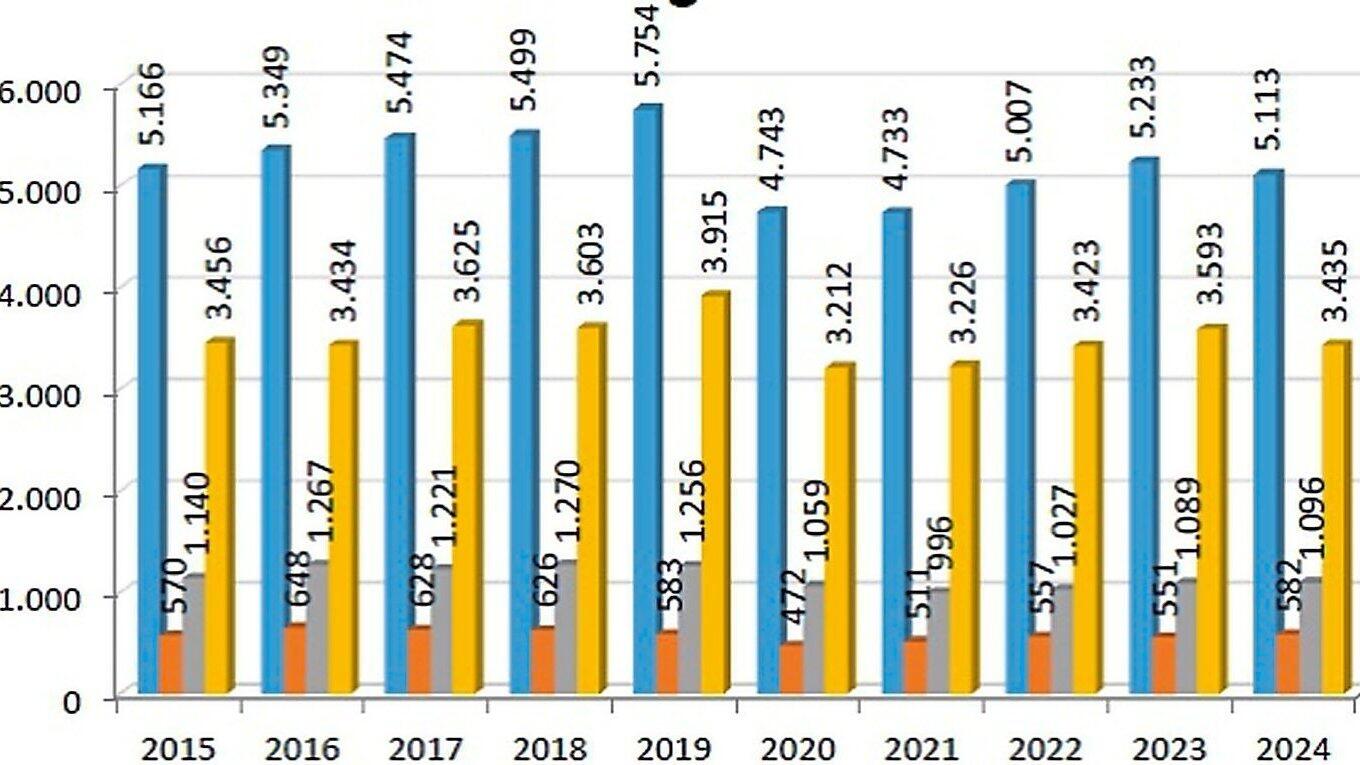 Mit insgesamt 5113 Unfällen registrierten die Polizeiinspektionen auf Kreisebene einen leichten Rückgang um etwas über zwei Prozent gegenüber 2023 mit 5233 Karambolagen.