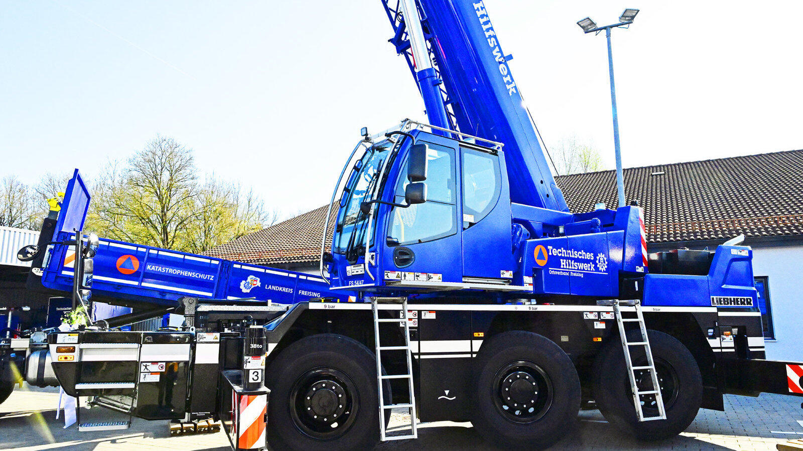 Das schwerste und teuerste Fahrzeug im THW-Fuhrpark in Freising ist der hochbewegliche Mobilkran in der 50-Tonnen-Hubklasse. Seine Aufgabe: Unfall- und Nothilfe sowie Brückenbau.
