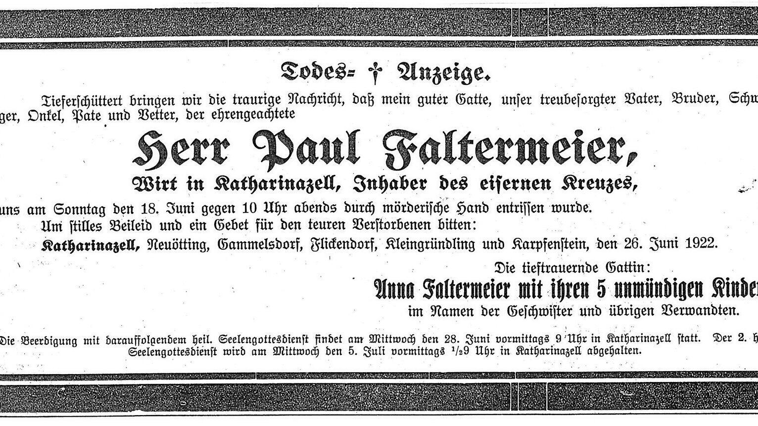 Rätselhaftes Verschwinden eines Familienvaters! Verbrechen oder Unglück?", so war es am 22. Juni 1922 in der "Moosburger Zeitung" zu lesen.