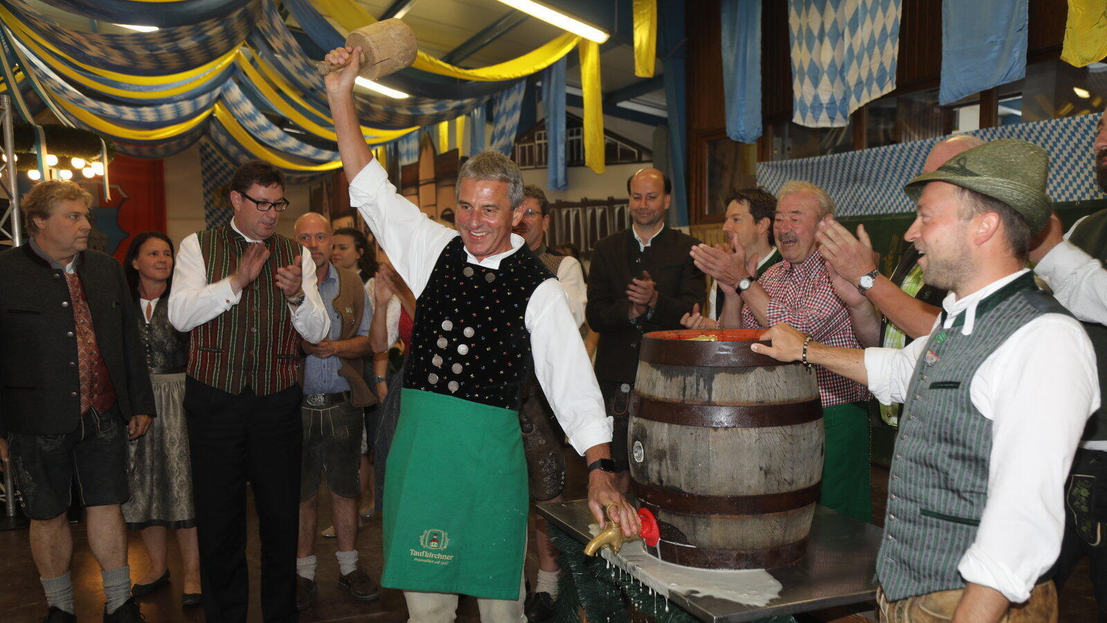 "O'zapft is" rief Bürgermeister Franz Hofstetter, der mit vier wuchtigen Schlägen das erste Holzfass angezapft hatte - letztmalig in seiner Amtszeit.