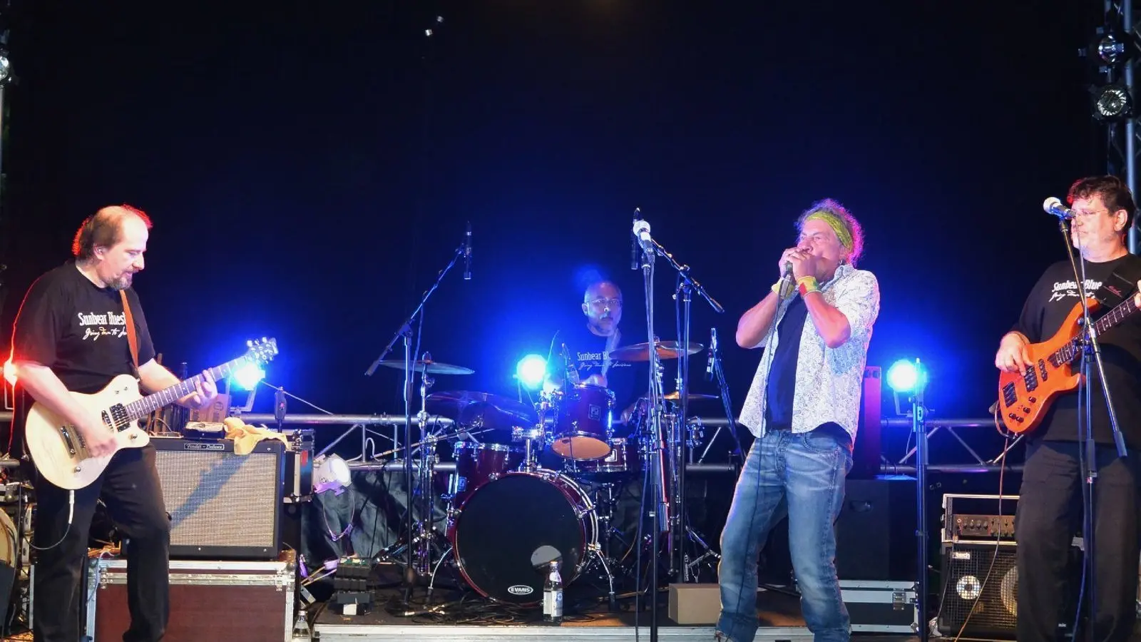 Die Location ist ideal für ein Wochenende Auszeit mit Gleichgesinnten und Freunden, am Waldrand stand die Bühne, auf der die Sunbear Bluesband am Freitag das kleine Festival mit gutem, alten Blues eröffnete. Gerhard Veit (Gesang, Harfe, Gitarre), Stefan Leonhardt (Gitarre), Thomas Schneidawind (Bass, Gesang) und Gerhard Gruber (Schlagzeug) huldigen seit mehr als zehn Jahren gemeinsam dem Blues. Ihre gecoverten Songs von Eric Clapton oder John Mayall sowie eigene Stücke stimmten die Gäste auf eine entspannte Zeit ein. Auf dem kleinen Zeltplatz am Badeweiher standen rund 20 Zelte und Camper, deutlich mehr als in den Vorjahren, berichtete Reinhard Lobenstock, einer der Organisatoren. Die Gäste nutzten die Gelegenheit, um zwei Tage lang in der Natur zu sein und nichts von der Musik zu verpassen. Ihr Nachwuchs eroberte den Spielplatz, die Seilbahn und genoss die Bewegungsfreiheit. Nach den Sunbears brachte die Rockband Lem Motlow aus München die ersten Zuhörer mit den Songs ihrer neuen CD "Believe" zum Tanzen. Als dritte Band folgte die 1969 von Bassist Günther V. Radny gegründete Regensburger Band "The Mystic Eyes". Nach wechselnden Besetzungen sind heute Hannes Heid (Gitarre), Matthias Pfaller (Gesang), Clemens Matejka (Piano) und Ernst Jomrich (Gesang) am Werk und ließen die Rockmusik aus den 60er und 70er Jahren, mit der auch die meisten Zuhörer groß geworden sind, aufleben.