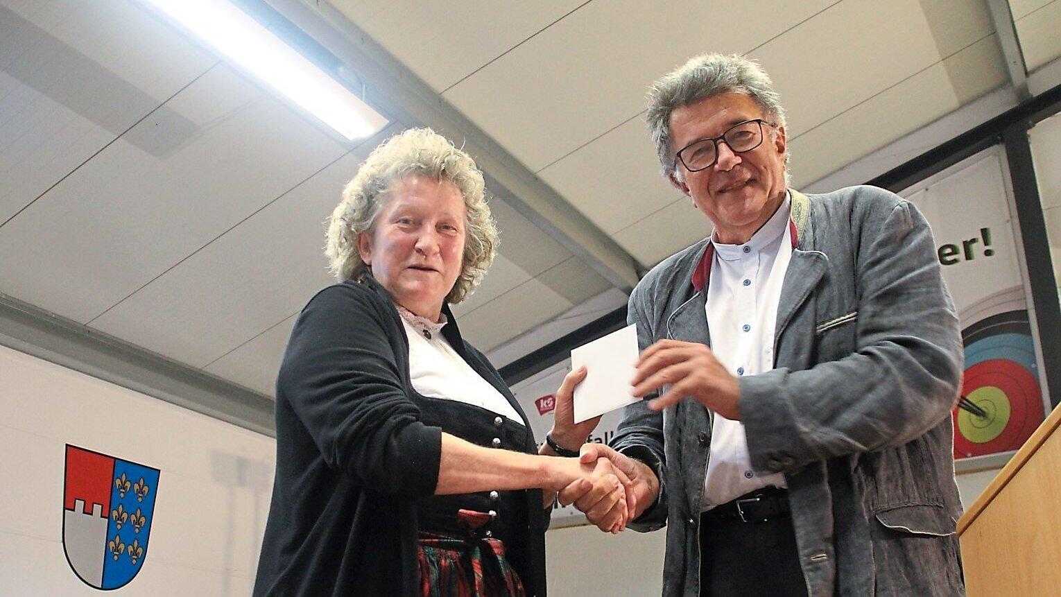 August Groh übermittelte die Glückwünsche des Kreisverbandes und überreichte Vorsitzender Rosi Daschinger das Geburtstagsgeschenk für den Verein.