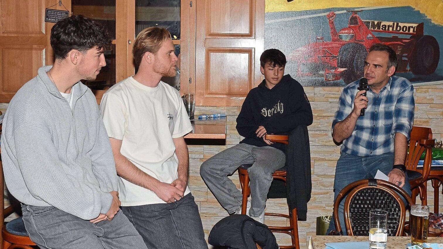 Tobias Grießer (r.) fühlte den Profis auf den Zahn: (v.l.) Moritz Bangerter und Thore Jacobsen.