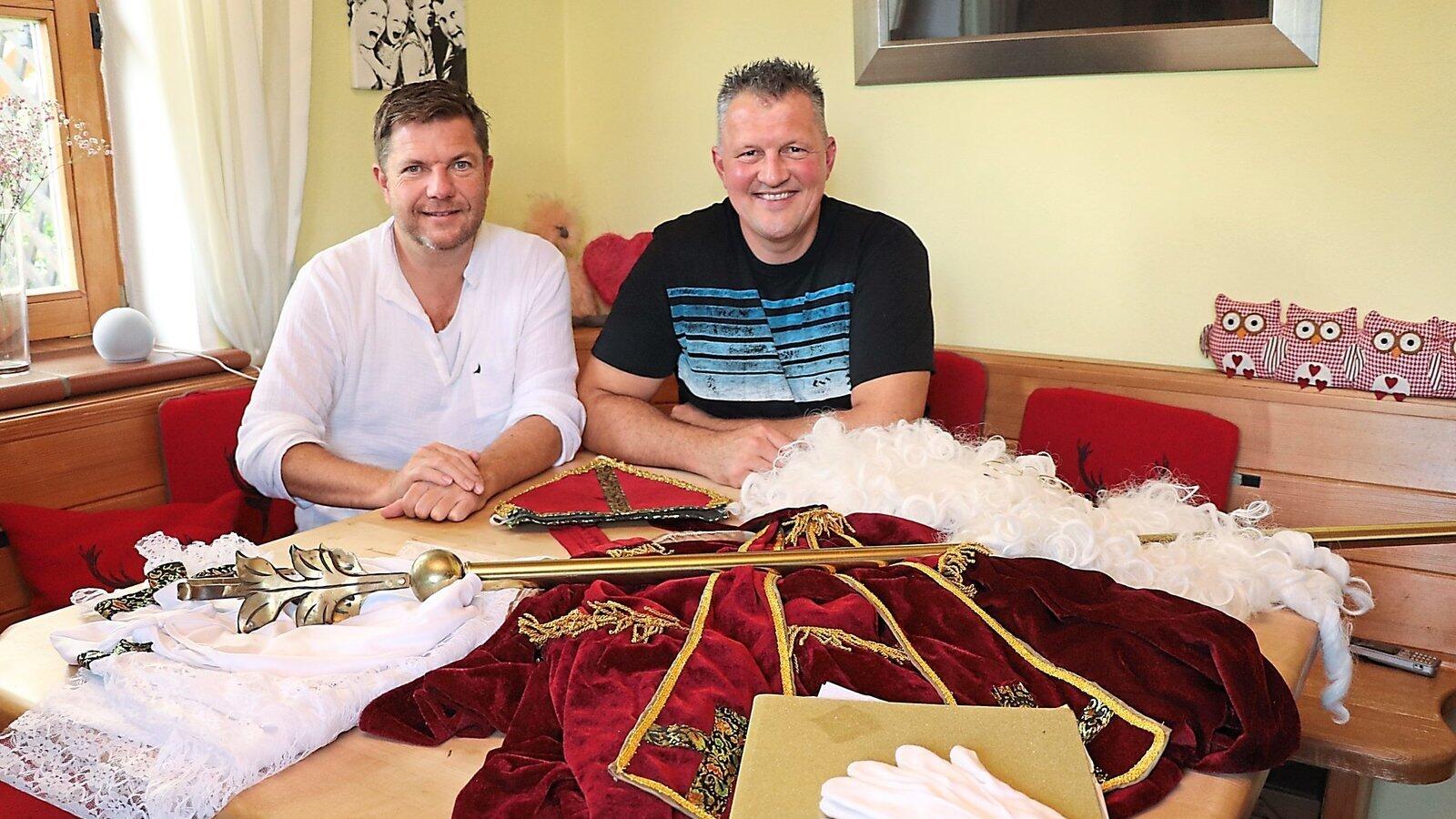 "Nikolaus" Anton Stengl (r.) legt - genauso wie "Krampus" Reinhard Lauterbach - großen Wert auf ein angemessenes Kostüm. Schließlich möchte man weihnachtliche Stimmung verbreiten.