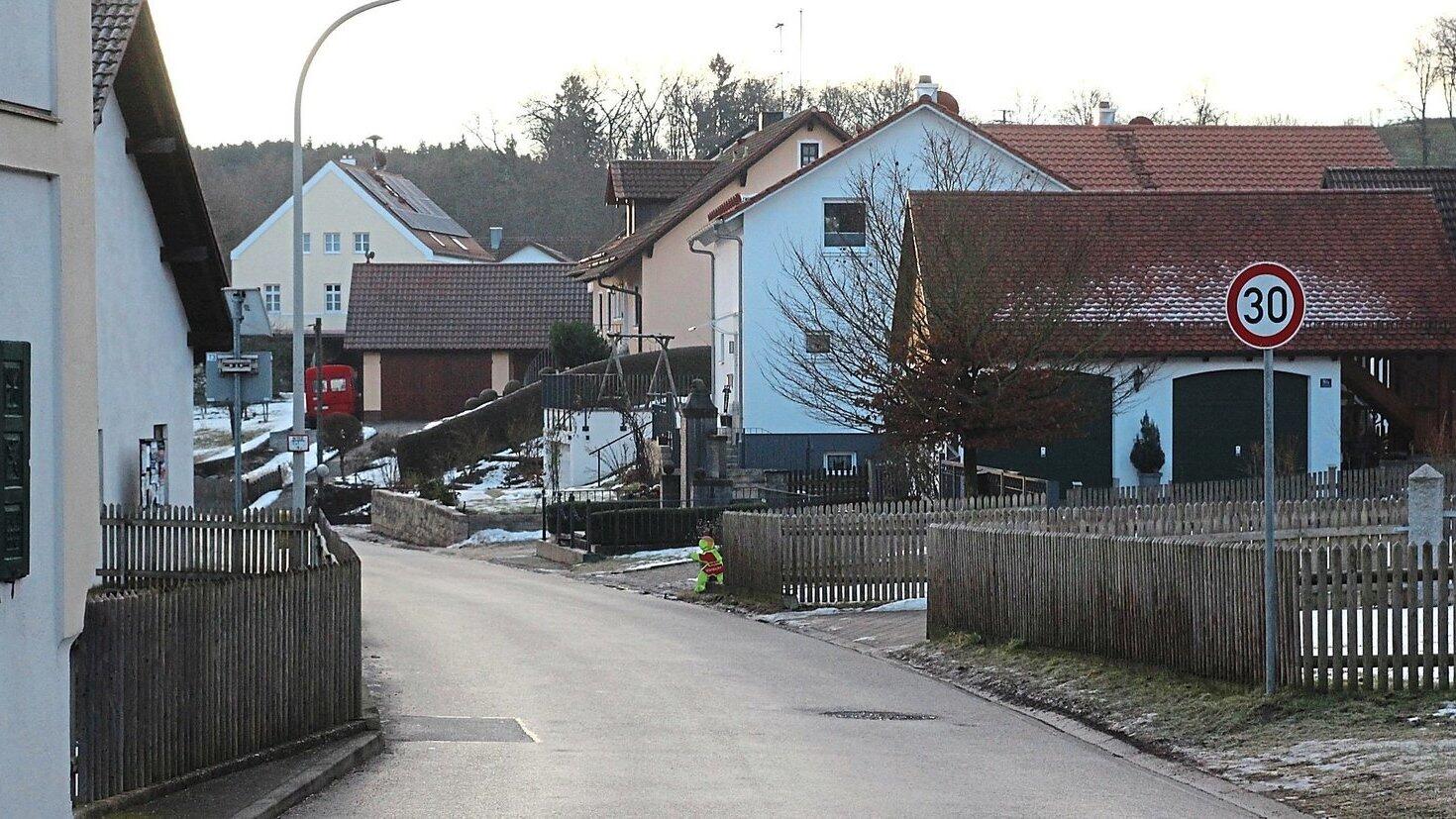 Allein diese Stelle ist nicht ganz ungefährlich, wenn Fußgänger und Fahrzeuge sich hier begegnen. Der seitens der Bürger erwünschte Fußweg durch die Ortschaft liegt derzeit allerdings auf Eis.