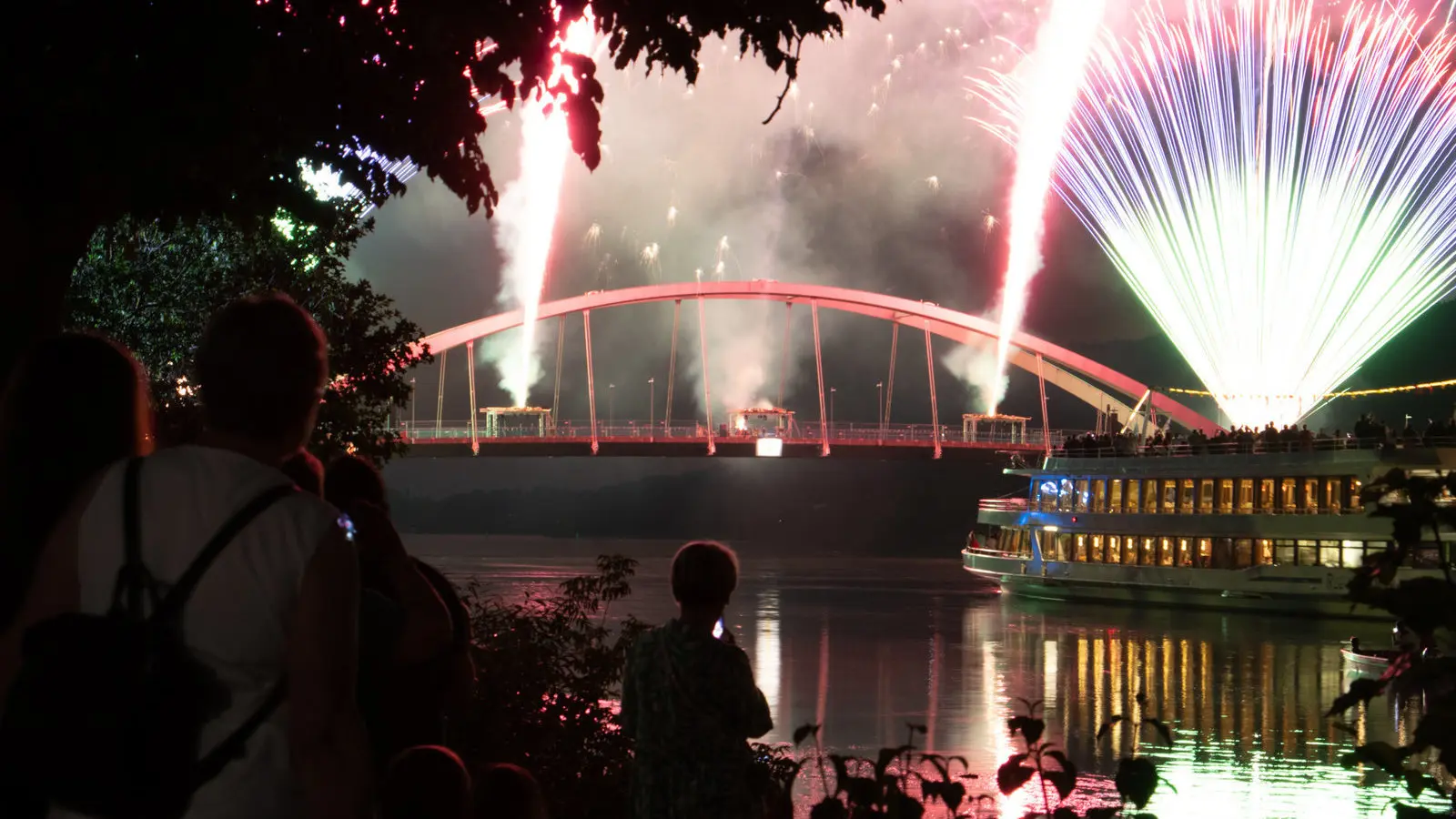 Der Sommerabend lockte bei Wohlfühltemperaturen Tausende von Besuchern an die beiden Donauufer. Bereits ab 20 Uhr füllten sich die Bänke auf beiden Seiten des Flusses. Wer rechtzeitig einen Platz auf einem der sieben Schiffe der Reederei Wurm und Noel einen Platz buchen konnte, konnte das Spektakel auch vom Schiff aus bewundern.