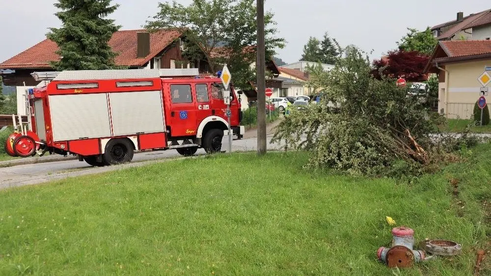 Dessen Hausbesitzer war gerade nach Hause gekommen und hatte die Garage Richtung Aufgang verlassen. Glücklicherweise befanden sich auch keine Kinder oder andere Passanten im Gefahrenbereich. An dem Auto entstand Totalschaden in Höhe von etwa 20.000 Euro. Er musste mittels Abschleppkran geborgen werden. Die Feuerwehr der Stadt Hauzenberg war mit großem Aufgebot am Einsatz beteiligt.