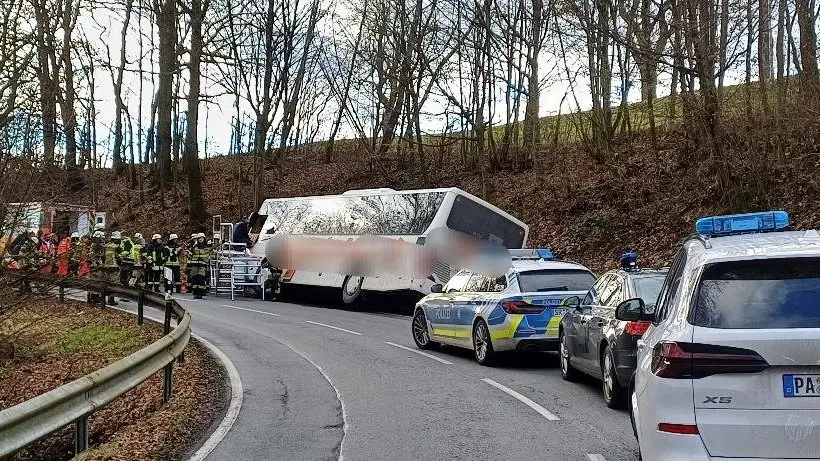 Schulbus rutscht in Passau mit 36 Schülern besetzt ins Bankett