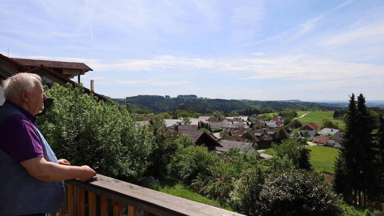 Ein herrlicher Blick auf den Bogenberg und den Gebäuden bietet sich Alfred Schindler von seinem Balkon aus. Hier macht er seine Beobachtungen.