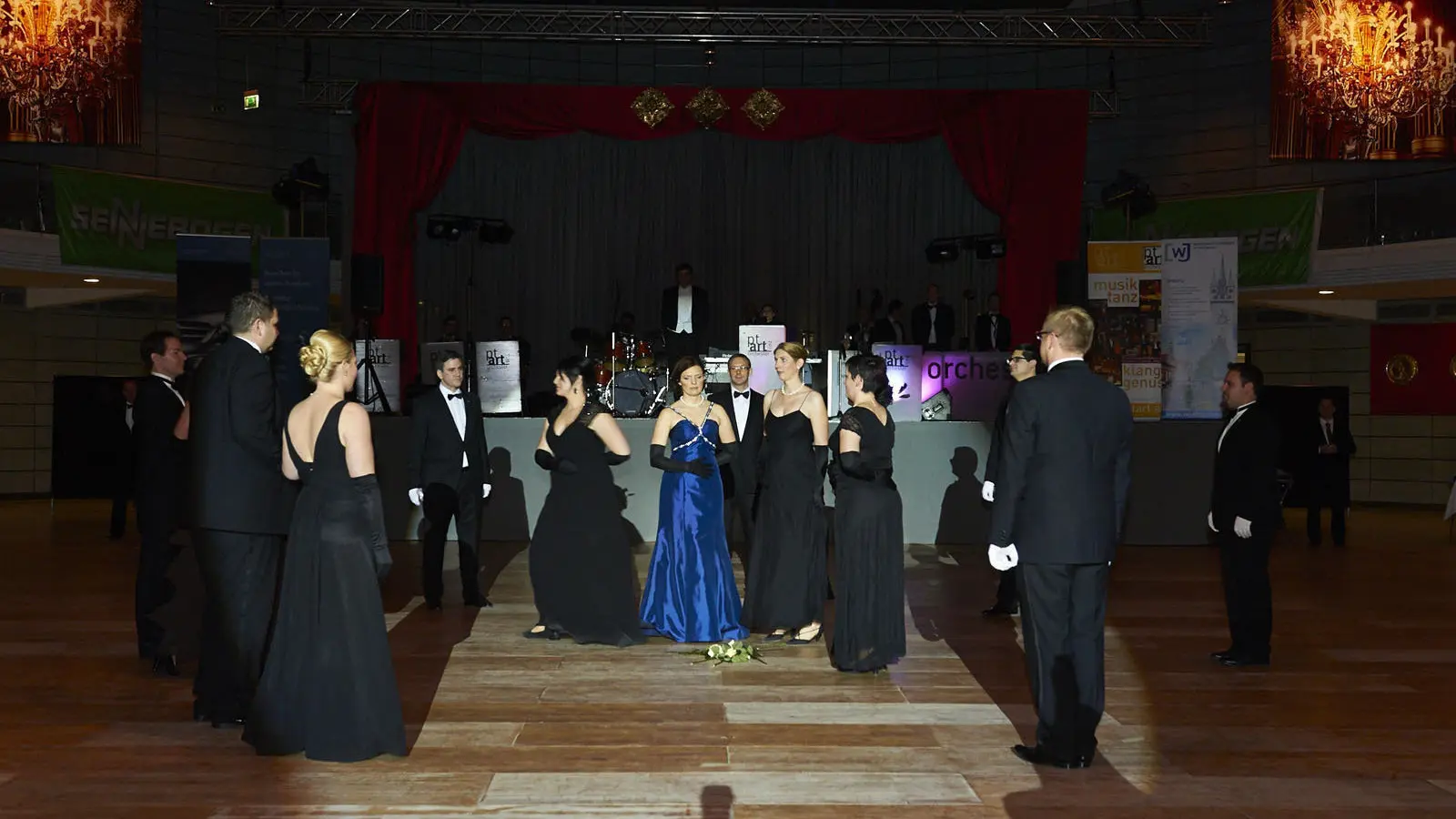 Wie im Vorjahr war für die Musik das "pt art Orchester" aus Linz zuständig. Musikalisch und gesanglich überzeugend erlaubten sich die elf Musiker mit ihrer Sängerin sogar einen befrackten Bandleader. Viele Walzer-Melodien bestimmten bei der Band aus Österreich das abendliche Musikangebot, das die Tänzerinnen und Tänzer immer wieder auf das Parkett lockte.