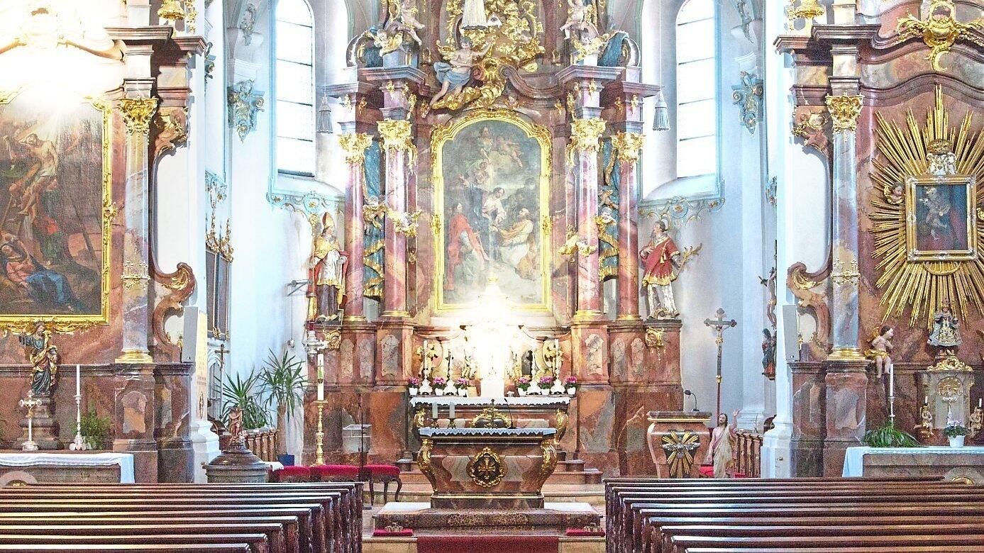 "Lichtspiele" in der Pfarrkirche Sankt Peter und Erasmus in Geiselhöring: Zum Frühlingsanfang erstrahlen die Altäre am Spätnachmittag wieder in gleißendem Licht.