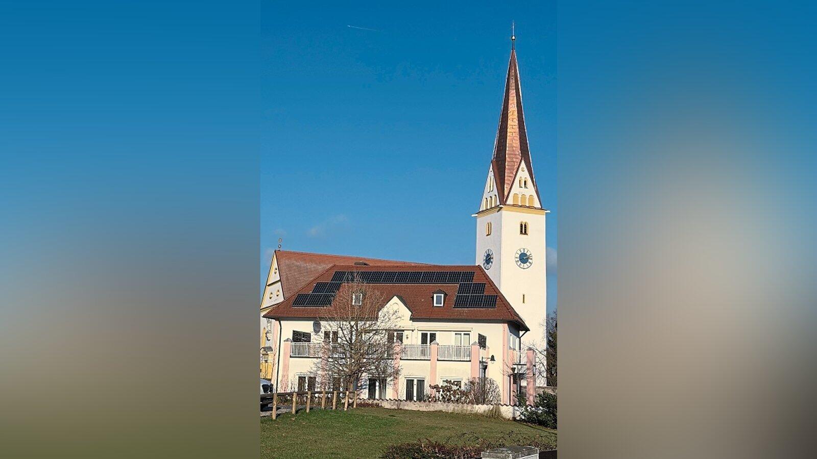 Der renovierte Turm der Pfarrkirche Sankt Stephanus in Straßkirchen glänzt in der Sonne. Im Frühjahr stehen noch weitere Sanierungsarbeiten an.