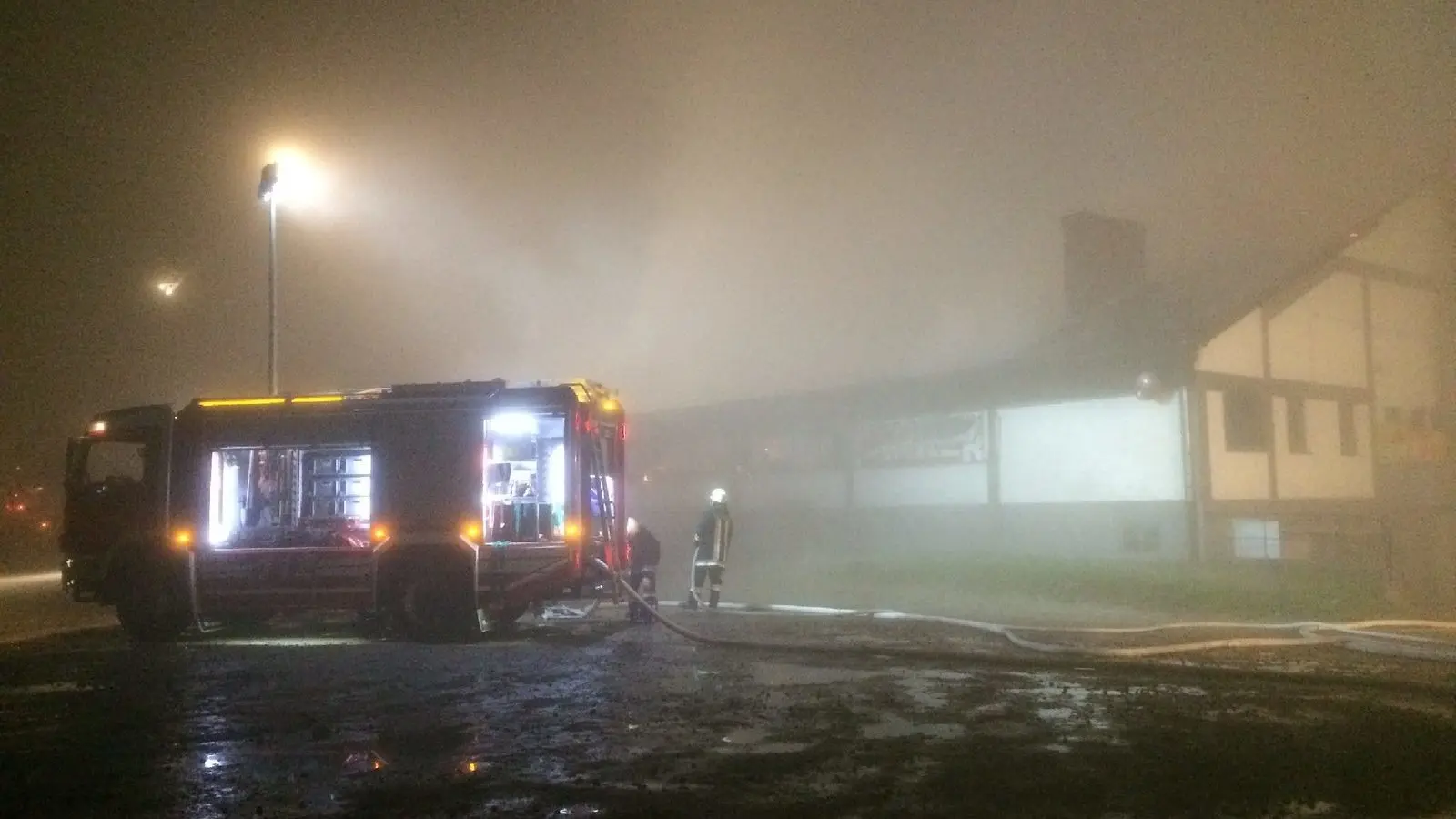 Großbrand im Landkreis Straubing-Bogen. Die Kultdisko Penker in Ascha ist am frühen Mittwochmorgen in Flammen aufgegangen.