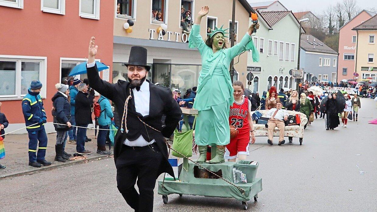 "Make Bogen great again amoi!" hieß es bei den Winklinger Faschingsfreunden, die mit etlichen amerikanischen Persönlichkeiten, Stars und Promis anreisten, darunter Abraham Lincoln, die Freiheitsstatue, gefolgt von Al Bundy.