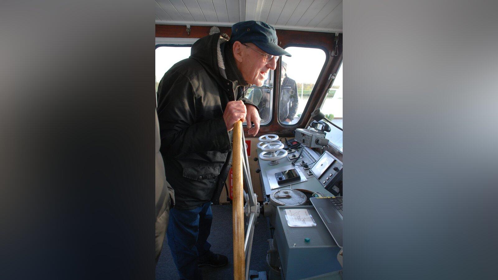 Rentner auf Abschiedsfahrt: Schiffsführer „Lucky“, der auch schon bei „Da bin i dahoam“ in einem Fernsehspot auftrat, ist jetzt im Ruhestand. Die Überraschungsparty, die zu seinem Abschied organisiert worden war, fand auf dem historischen Schlepper „Freudenau“ statt - den er zwischendurch dann auch steuerte.