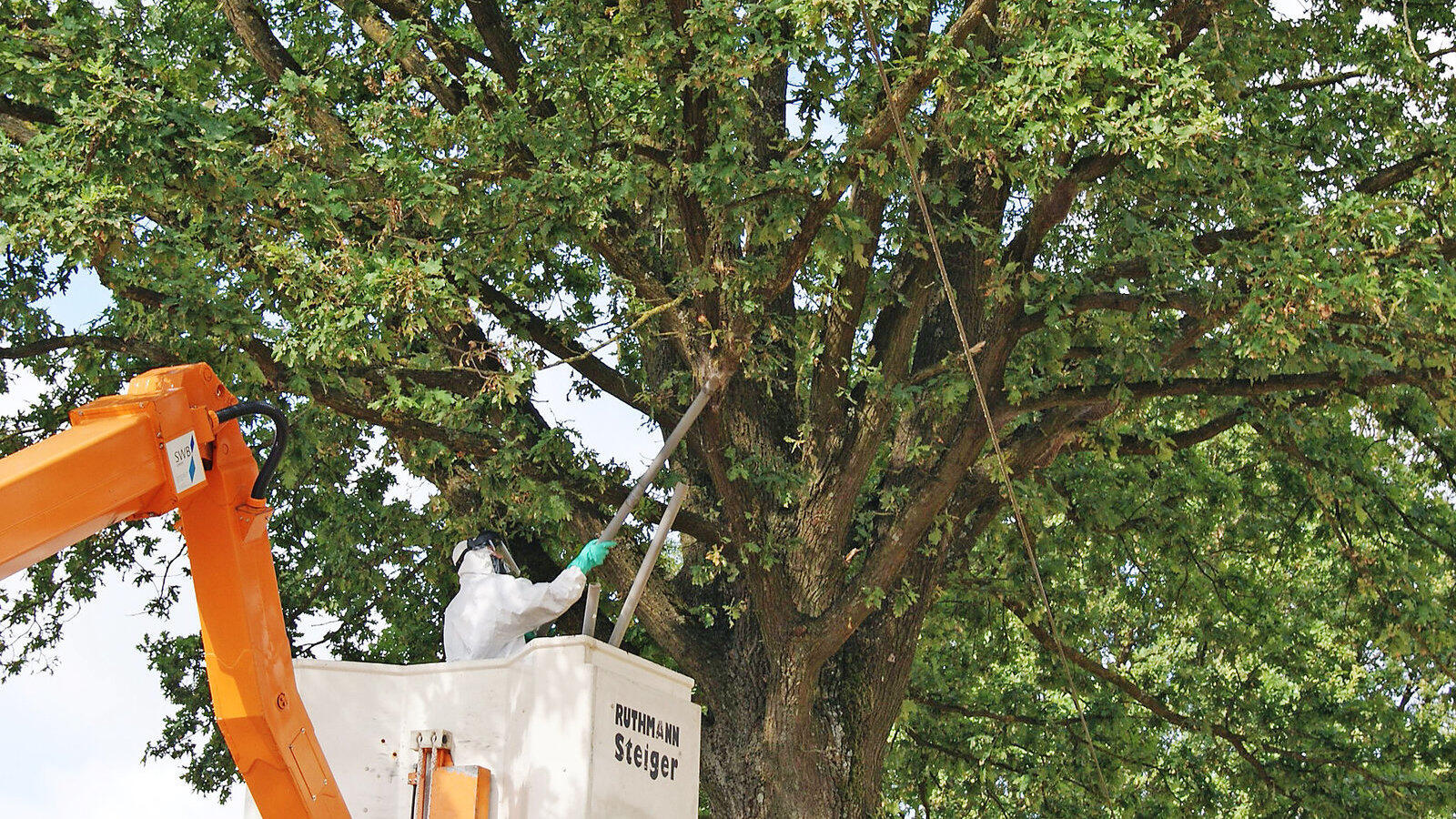 Mit dem Sauger, ohne Gift gegen den Eichenprozessionsspinner: Lob vom Bund Naturschutz
