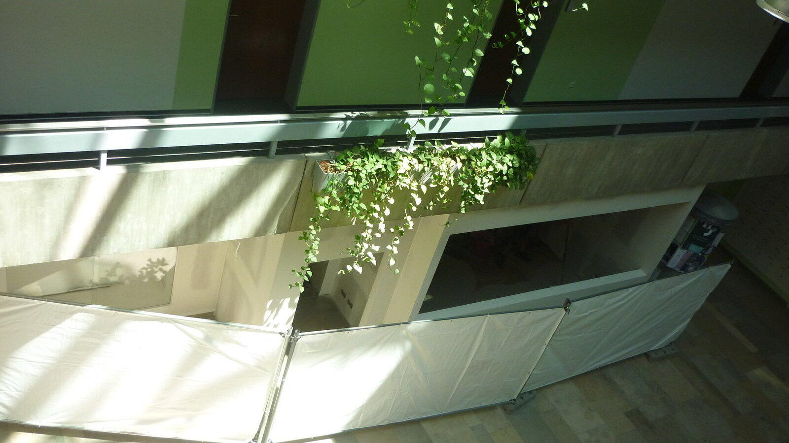Viele Menschen halten sich täglich in der Aula des Landratsamtes auf. Seit etlichen Wochen wird dort nun schon gebohrt, gehämmert und gesägt, anfangs verborgen hinter einer schwarzen Plastikwand, später abgetrennt durch