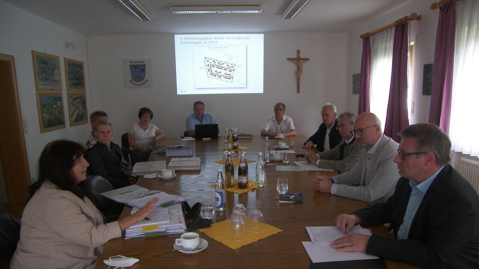 VG-Geschäftsstellenleiterin Barbara Mendi, Regierungsrat Moritz Seissler und Uwe Roth Abteilungsleiter Wasserrecht beide Landratsamt, Stellvertretende Bürgermeisterin Anna Erdinger, Bürgermeister Martin Englmeier, 3. Bürgermeister Xaver Gilch, MdB Alois Rainer, Landrat Josef Laumer, MdL Manfred Eibl und MdL Josef Zellmeier (von links) bei der Besprechung im Sitzungssaal des Poschinger Rathauses.