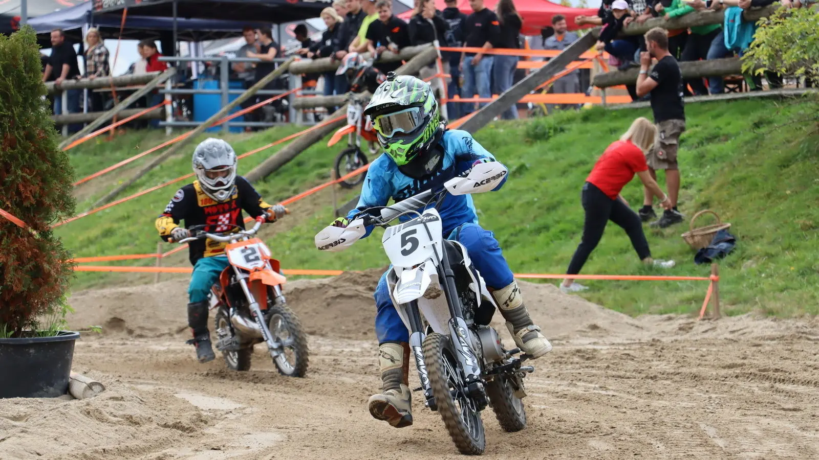 Zuvor wurde noch ein Motocross-Rennen eigens für Kinder ausgetragen. Sie waren mit Motocross-Zweirädern, die entweder 50 oder 65 Kubik Leistung hatten, am Start. Nicht weniger spannend ging es hier zur Sache, mutig und unerschrocken fuhren sie über die Strecke. Wer nach zehn Minuten die meisten Runden schaffte, war Sieger. Ehrenpokale gab es hier für das einzige Mädchen und den jüngsten Teilnehmer, der mit seinen erst fünf Jahren ins Rennen ging.