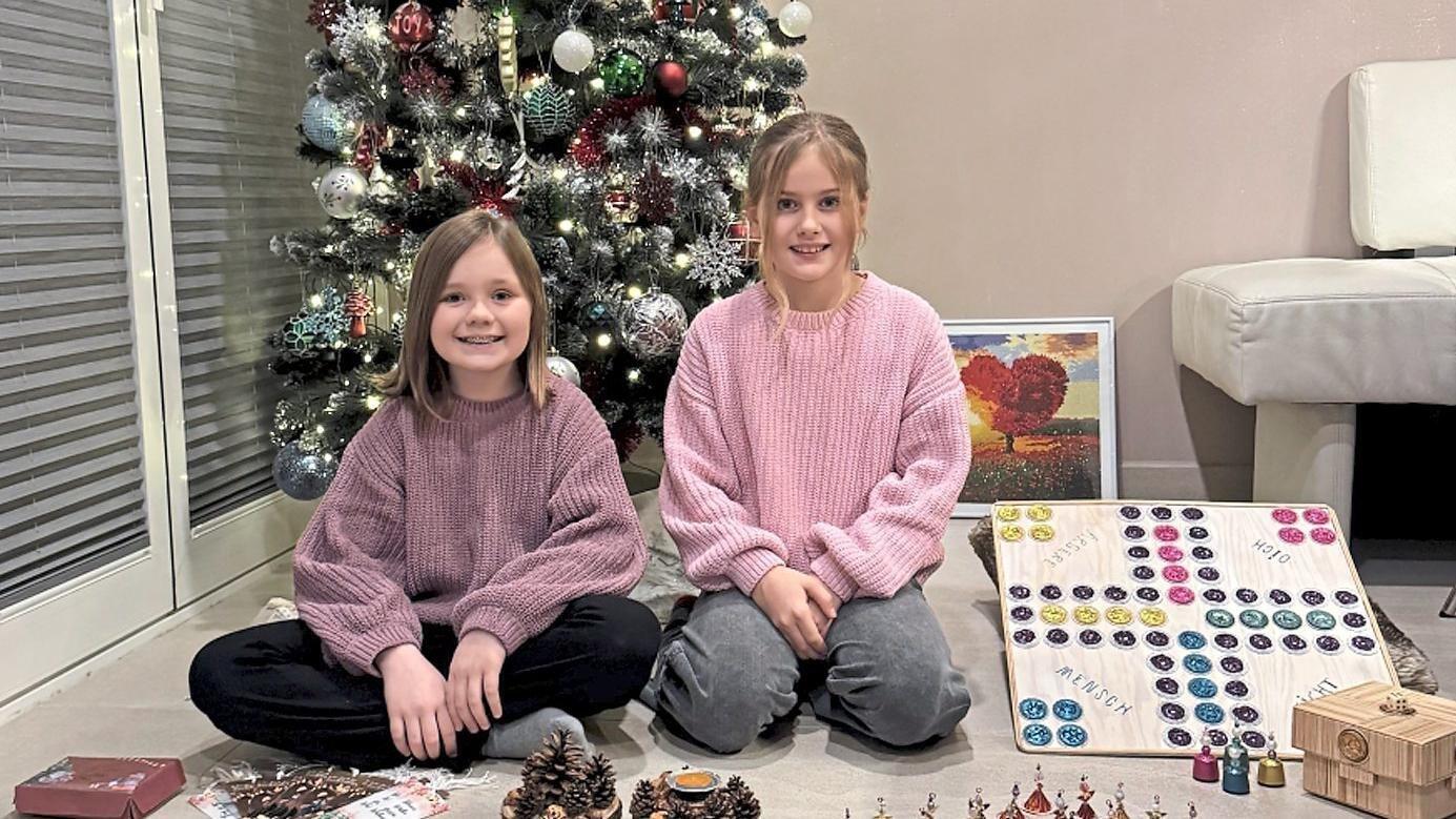 Emily (l.) und Elina bieten auf dem Christkindlmarkt in Kirchroth Bastelsachen an. Der Erlös wird gespendet.