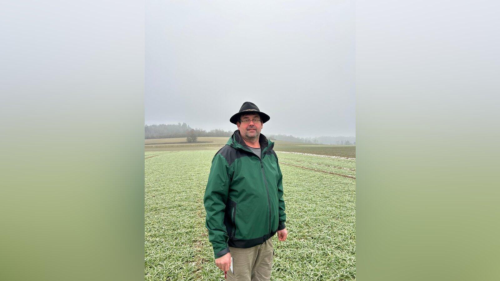 Martin Spanner steht auf seinem Wintergerstenfeld; im Hintergrund die Agrarlandschaft, wie wir sie überall im Landkreis gewohnt sind. Doch das könnte sich ändern, erklärt der Agraringenieur und Landwirt im Interview.