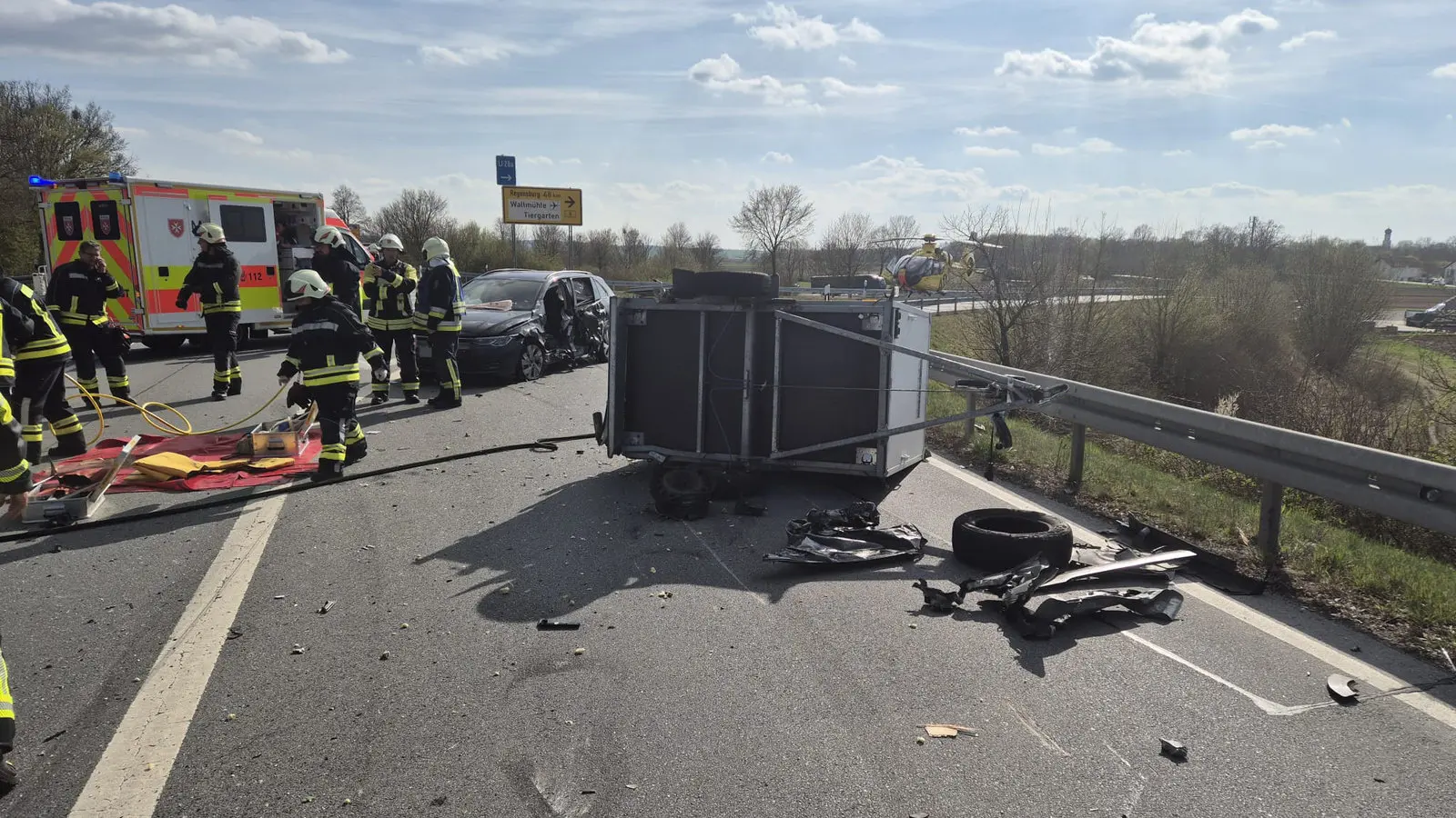 Der Alarm bei der Feuerwehr ging um 15.57 Uhr ein. Gemeldet wurde ein Unfall bei der B 20-Ausfahrt zur B 8 bei Aiterhofen mit zwei Fahrzeugen, eines davon mit Anhänger, und einer eingeklemmten Person. Der Anhänger kippte bei dem Zusammenstoß um. Vor Ort stellten die Einsatzkräfte fest, dass niemand eingeklemmt war. Die Person hatte aber kürzlich einen Bandscheibenvorfall und musste deshalb mit einem KED-System, also einem Rettungskorsett, aus dem Auto befreit werden. Anschließend betreute der Rettungsdienst den Verletzten weiter. Am Unfallort war auch der Rettungshubschrauber Christoph 15.