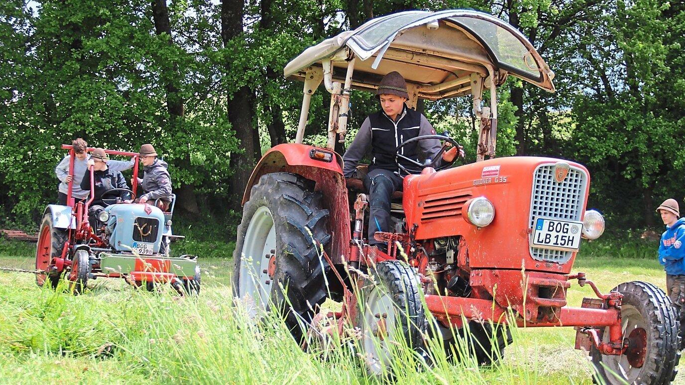 „Back ma’s“, schreit der 17-jährige Torrin. Wenig später brummen Oldtimer-Traktoren eine kleine Straße in Schwarzach entlang, biegen ab, fahren auf ein Feld. Junge Burschen lenken die alten Bulldogs.