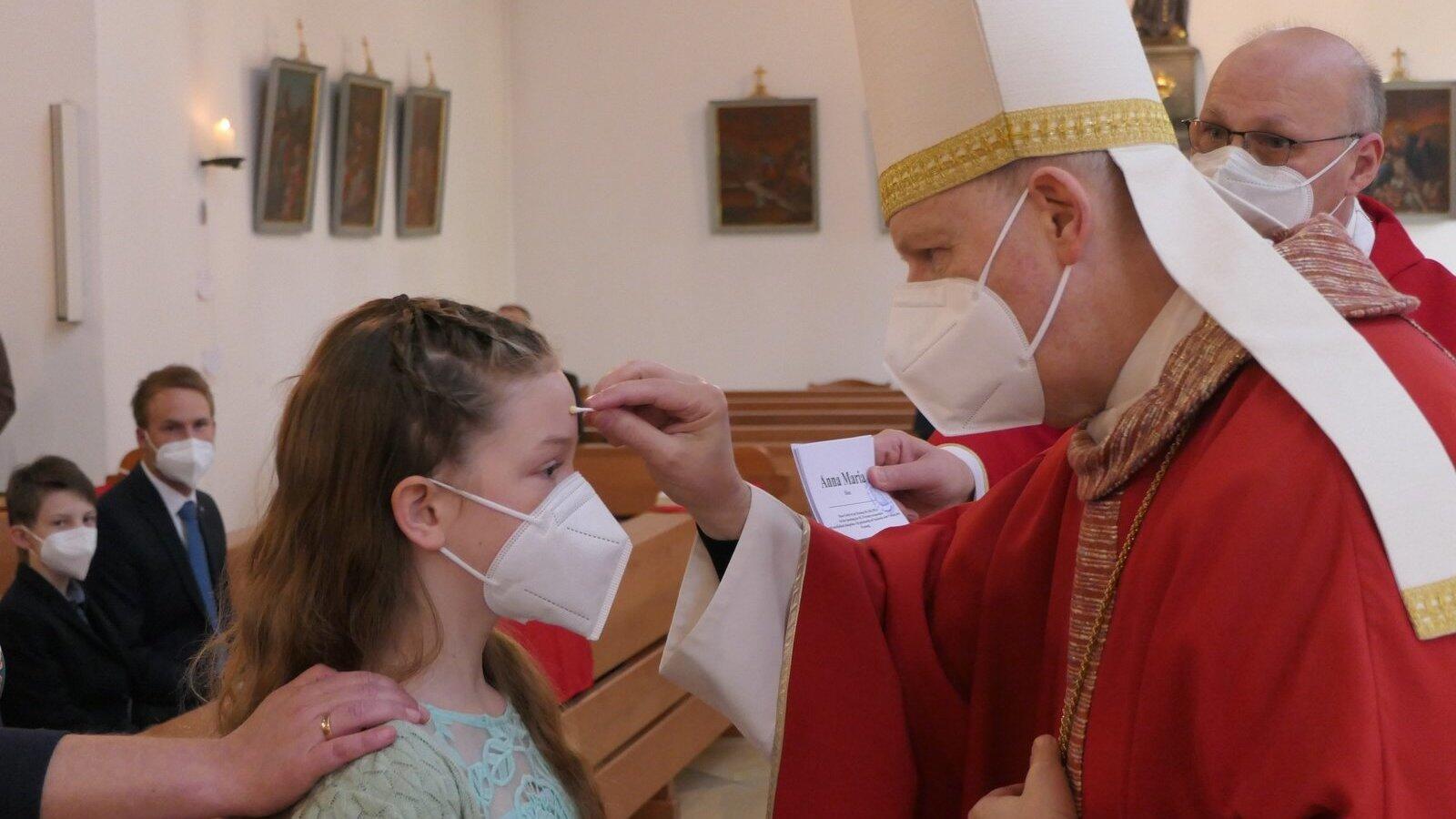 Die Firmung in Parkstetten um 11 Uhr:Coronabedingt wird momentan bei den Firmungen die Chrisamsalbung mit dem Wattestäbchen durchgeführt: "Anna, sei besiegelt …"