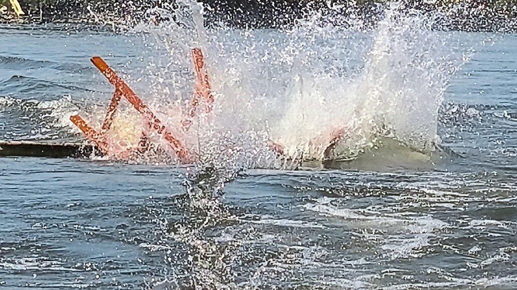 Manchmal platscht’s eben: Nicht immer ist es so einfach, auf der Installation das Gleichgewicht zu halten.