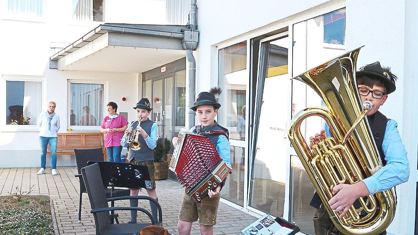 Die "Wiesenter Hundsbuam" brachten große Freude ins Wiesenfeldener Seniorenheim Rosenium, als sie für die Heimbewohner aufspielten.