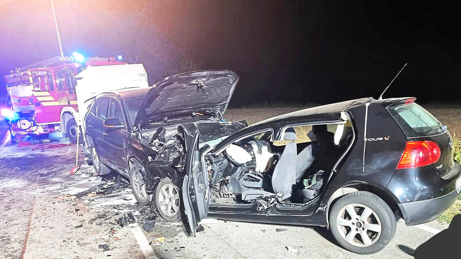 Mit voller Wucht sind die beiden Fahrzeuge frontal zusammengestoßen. Die Wucht des Aufpralls kostete einen 18-jährigen Mitfahrer im VW Golf das Leben.
