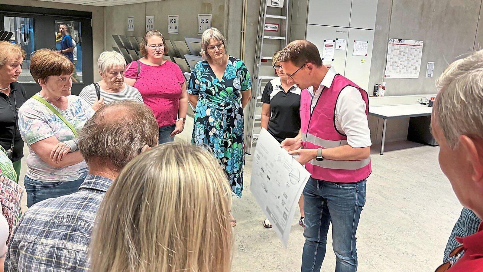 "Wie viel Strom braucht es, eine einzige Zeitung herzustellen?", fragt Sven Lahrssen in die Besuchergruppe. "100 Watt", antwortet ein Mann. "Fast!