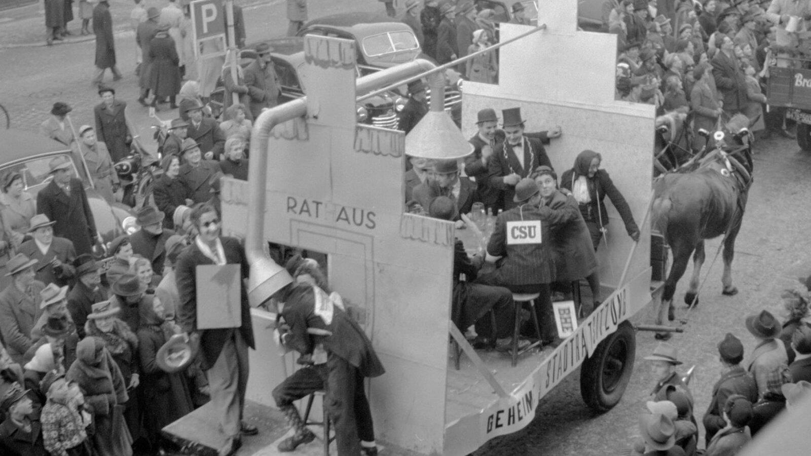 Wer sich mit der Geschichte des Rathauses beschäftigt, stößt auf so mancherlei Interessantes und Amüsantes. Passend zur Faschingszeit und den anstehenden Kommunalwahlen seien Fotos im Stadtarchiv aus dem Jahr 1953