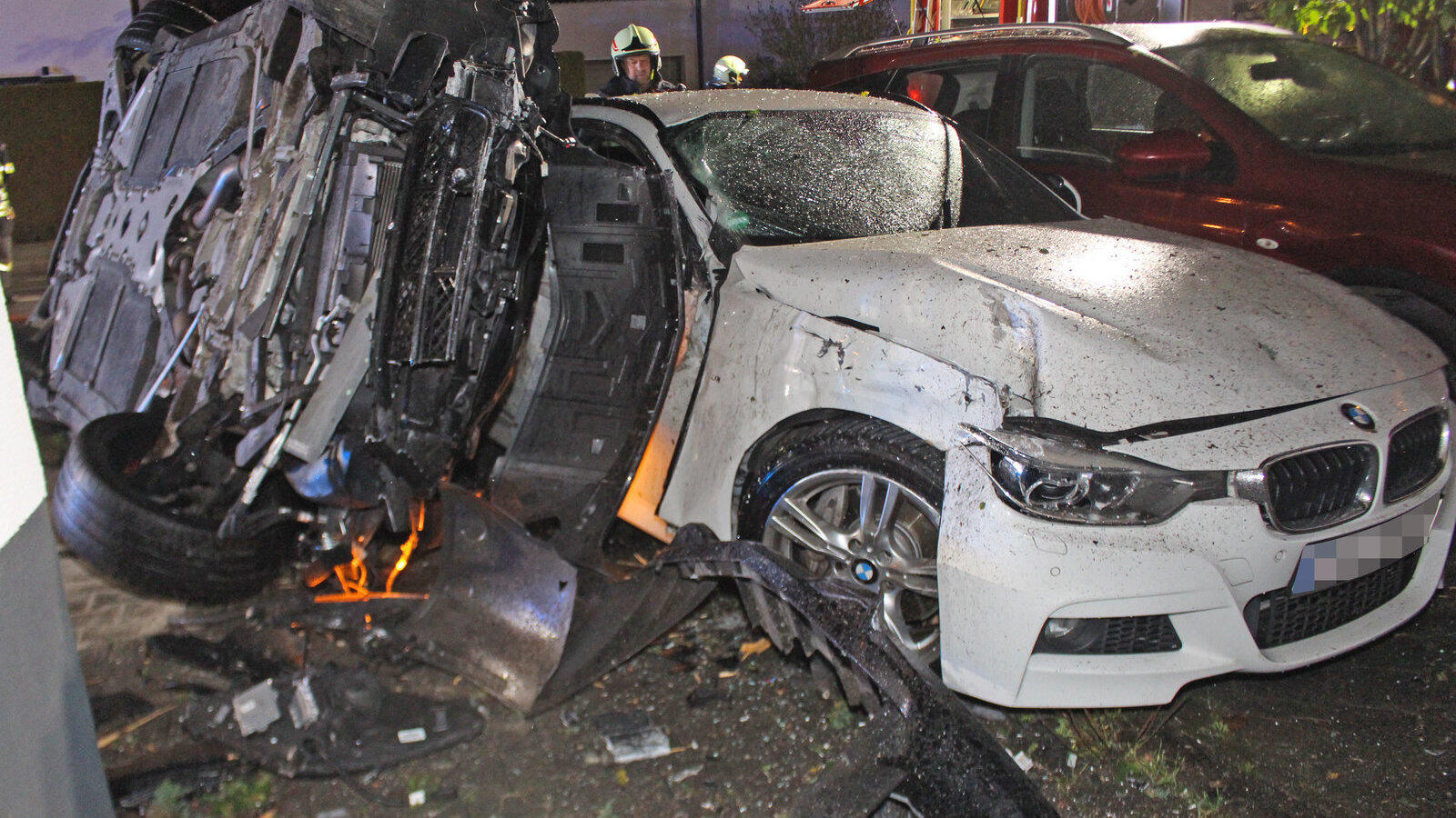 Auto kollidiert in Straubing mit Hausmauer und zwei Autos