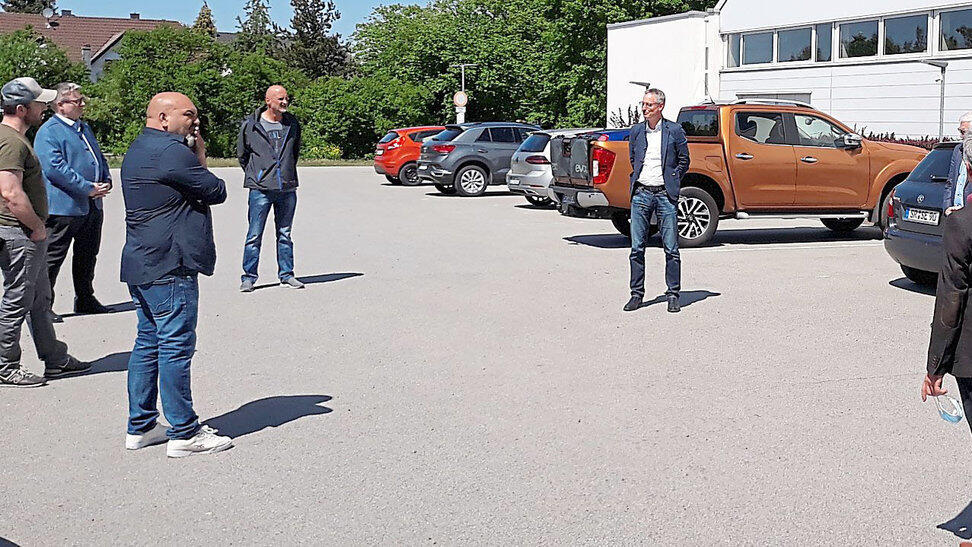 San Remo-Wirt Massimo (3.v.l.) mit Kollegen beim Parkplatz-Termin mit OB Pannermayr (5.v.l), städtischen Spitzenleuten und MdL Zellmeier (2.v.l.).