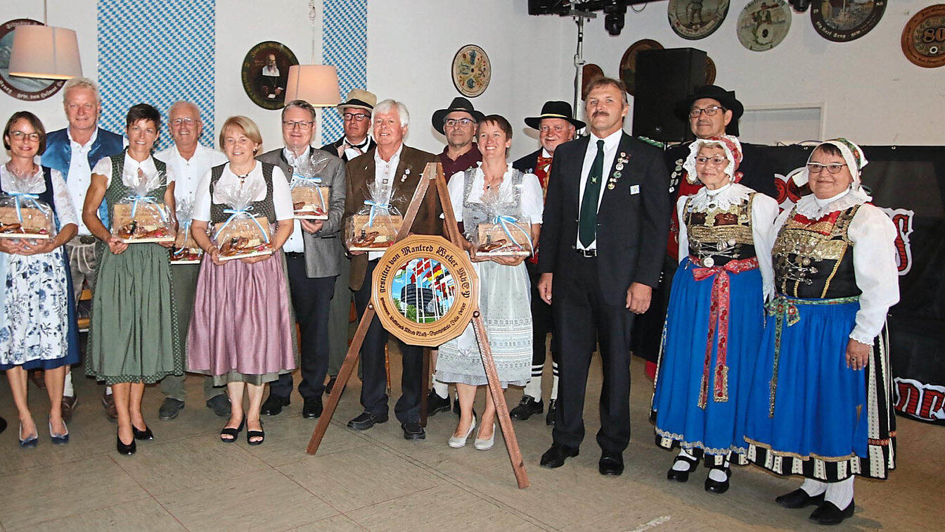 Die Siegerehrung nahm Schützenmeister Arthur Wintermeier (4.v.r.) mit Sportleiter Albert Eckl (7.v.r.) und Oberbürgermeister Markus Pannermayr (l.) vor.