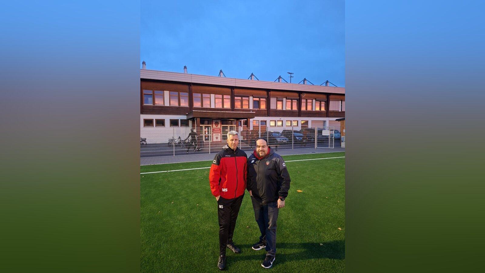 Jugendtrainer Mario Schwaiger (links) und Jugendleiter Daniel Porwol vom FSV VfB würden sich über Verstärkung sehr freuen.