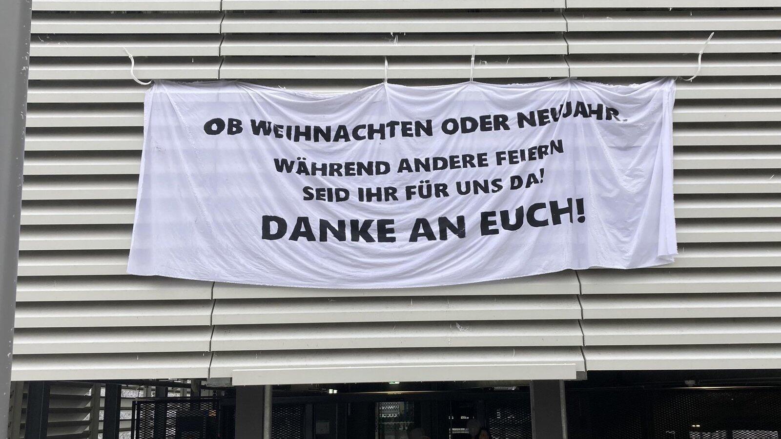 Dankeschön an das Team vom Klinikum Straubing: Wer das Plakat aufgehängt hat, ist bislang unklar.