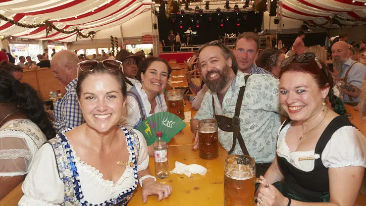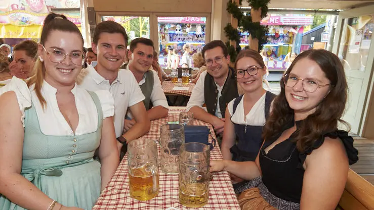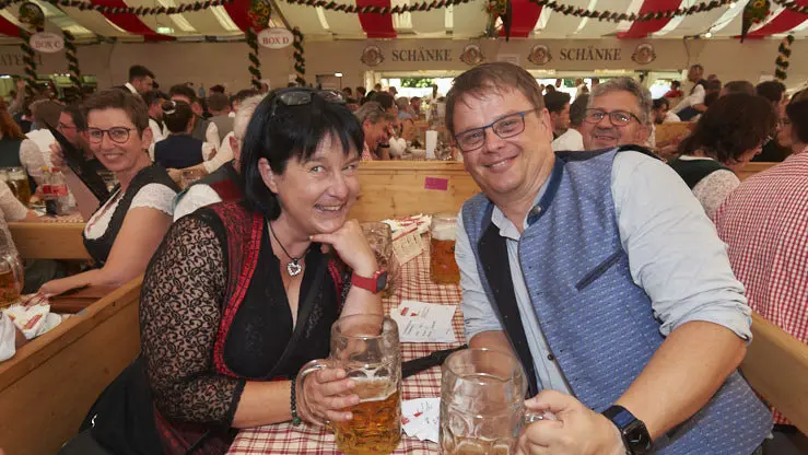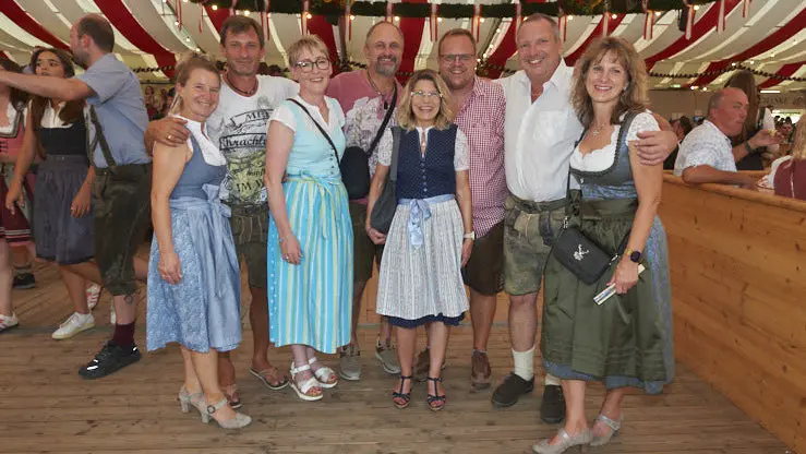 Der Sprecher der Festwirte, Martin Lechner, hat an Mariä Himmelfahrt, 15. August, Geburtstag - gratulieren erlaubt. Der Bar-Bereich ist in diesem Jahr neu gestaltet, erzählen die Lechners. Der Stehbereich ist vergrößert, es gibt sechs Weinfässer, auf die Tischplatten befestigt werden, und einen Holzventilator für eine „leichte Brise“. Mutige Feinschmecker können heuer die neue Vorspeise probieren: Weißwurststreifen in süß-saurem Schnittlauchsud mit Radieschen und Bauernbrot. An Guadn!