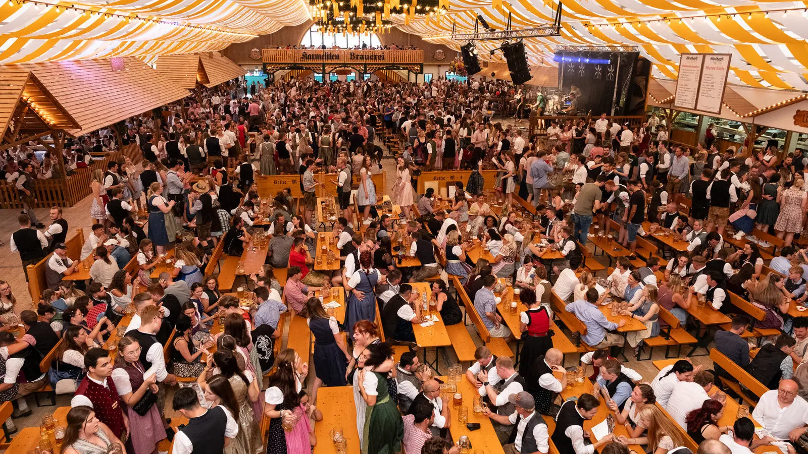 2.872 Sitzplätze im Zelt, davon 1.100 in Boxen, bietet das Nothaft-Zelt. Dazu kommen 400 Plätze auf Giebelemporen und 170 auf Innenemporen sowie 1.646 Sitzplätze im Garten. Das macht 5.088 Sitzplätze insgesamt.